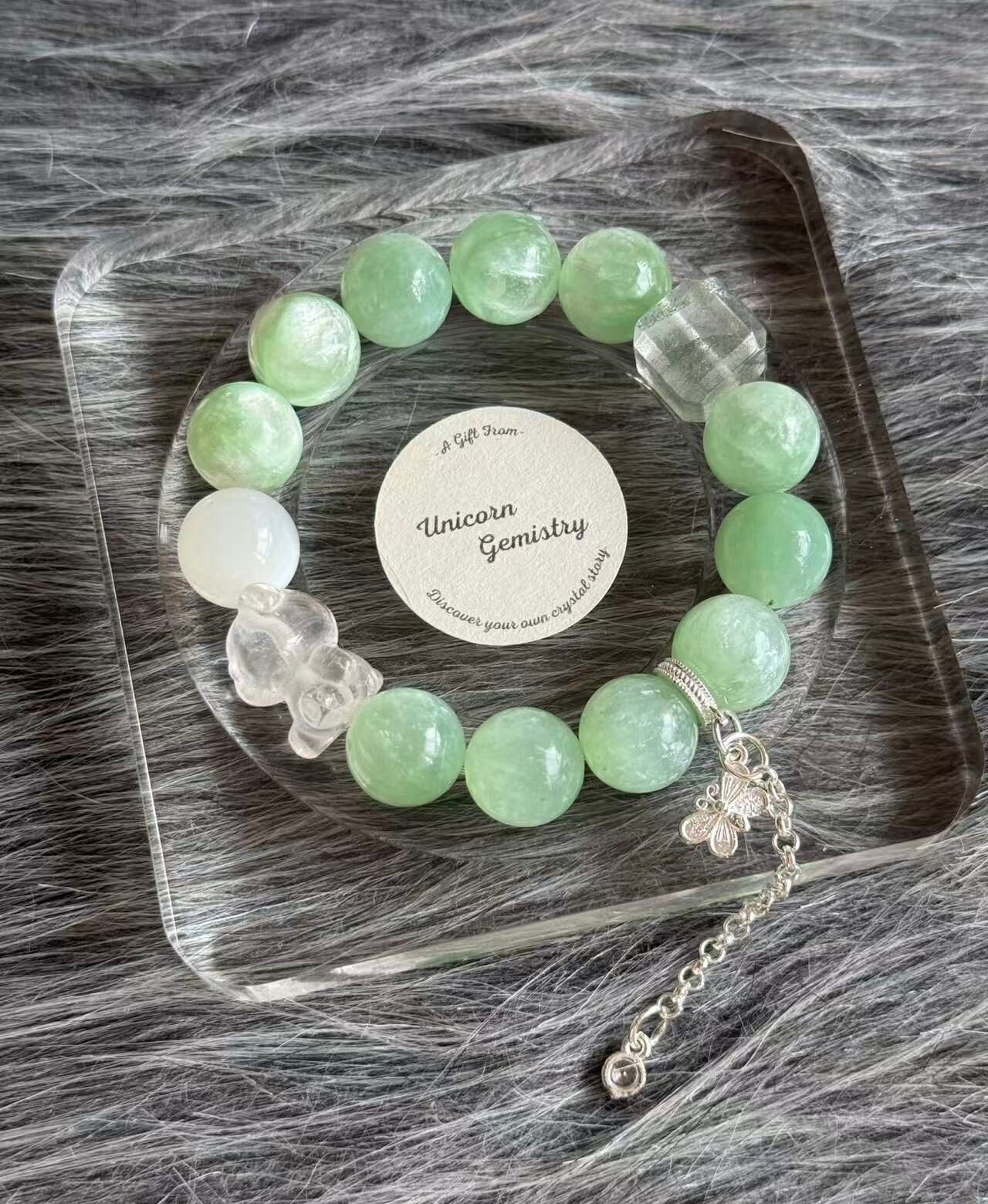 - Components: Green Mica, White Moonstone, Clear Quartz, Layered Green Phantom Quartz
