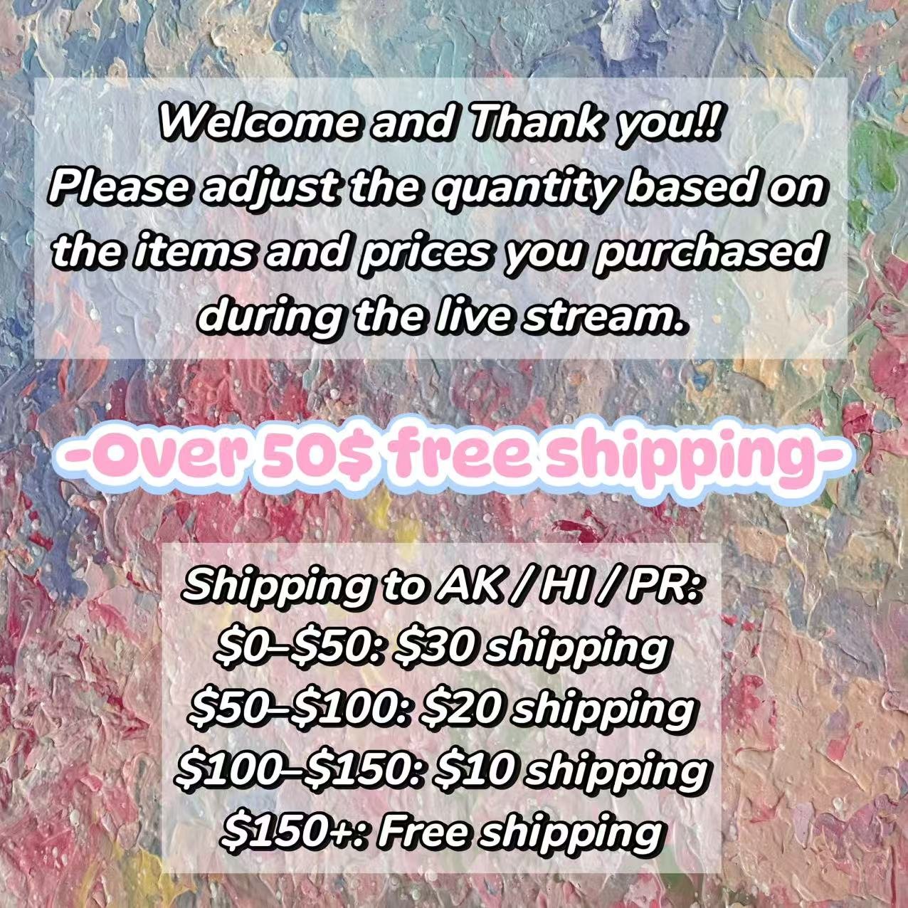 Welcome and Thank you!! Please adjust the quantity based on the items and prices you purchased during the live stream.